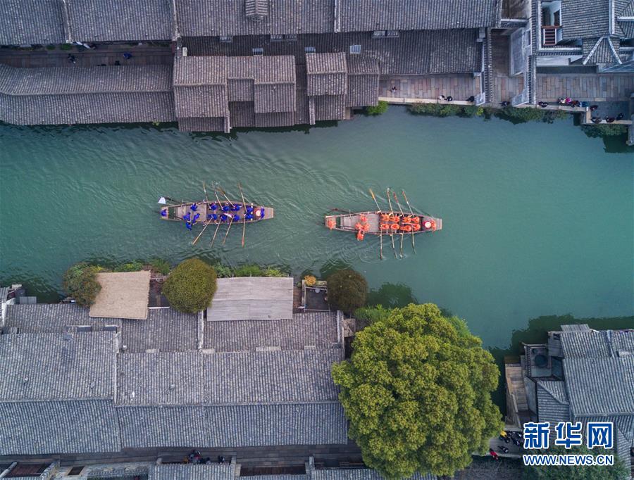 3月29日,烏鎮(zhèn)水鄉(xiāng)百姓在烏鎮(zhèn)西柵景區(qū)參加名為“踏白船”的傳統(tǒng)水上競(jìng)技活動(dòng),吸引游客前來感受水鄉(xiāng)獨(dú)特的民俗風(fēng)情?!疤ぐ状备?jìng)賽的目的是為了祈求蠶桑豐收。