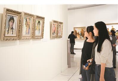 仔細(xì)觀察不難發(fā)現(xiàn),革命浪漫氣息處處彌漫在閻文喜的作品之中。觀眾呂女士告訴記者,通過(guò)他的作品,仿佛帶我們重溫那個(gè)時(shí)代的藝術(shù),可以感受到一段歷史的質(zhì)感。“從他的筆觸中,可以看到那段充滿激情的歷史,也將我們的記憶帶到那崢嶸歲月。”
