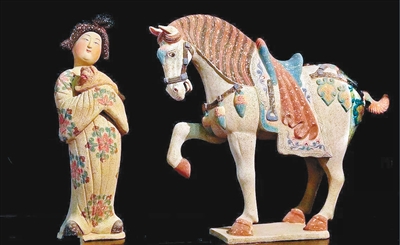 唐彩繪女俑和戰(zhàn)馬