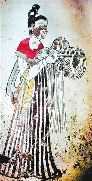 那么,唐初流行了幾十年的“羃”是什么樣子?從文獻(xiàn)記載看,它的特點(diǎn)是“全身障蔽”。《舊唐書·李密傳》記載李密投降唐朝后再次反叛,帶領(lǐng)上千士兵,化妝成女性,戴羃,羃內(nèi)藏刀,到縣城后,變裝持刀殺出,占領(lǐng)了縣城。我們可以設(shè)想一下,上千“女性”穿戴著羃在道路上行走,路人不僅不以為怪,而且不知是士兵,可見“羃”的流行,以及遮蔽之嚴(yán)??上У氖牵壳皬奈奈镔Y料中還找不到“羃”的確切形象。1990年,在盜掘后的唐太宗燕妃墓壁畫中,有一幅被考古工作者定名為“捧羃女侍圖”,似乎仕女捧的是“羃”。