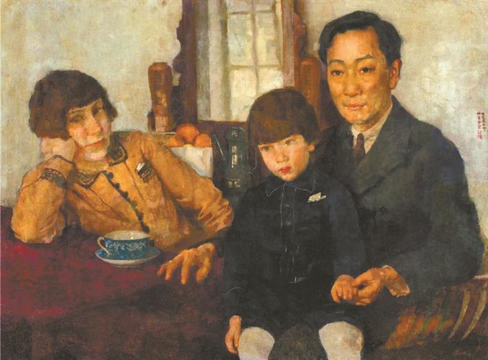 《楊仲子全家?!芬彩俏χ?,它以沉靜之態(tài)吸引觀眾駐足,忍不住與畫(huà)中人對(duì)視。這是徐悲鴻的佳作,畫(huà)的是好友楊仲子一家。楊仲子是中國(guó)最早留學(xué)歐洲研習(xí)西方音樂(lè)的先驅(qū),回國(guó)后傳授西方音樂(lè),創(chuàng)建并推進(jìn)中國(guó)音樂(lè)教育教學(xué)體制,倡導(dǎo)改進(jìn)并推動(dòng)民族音樂(lè)發(fā)展。這件創(chuàng)作于1928年冬天的作品,徐悲鴻畫(huà)出了楊仲子和妻子、孩子閑適的狀態(tài)。畫(huà)中三人神態(tài)各異,在藝術(shù)家的傳情畫(huà)筆下,觀眾似能看到他們恬淡表情之后的情緒。