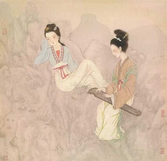 重彩工筆是郭小凌的藝術(shù)特色。中央美術(shù)學(xué)院人文學(xué)院教授李建群認(rèn)為,郭小凌的重彩工筆人物畫具有穿越自然與召喚心靈超現(xiàn)實(shí)主義情懷 ?!白鳛榘牍ぐ雽懙闹夭嗜宋锂嫾?,郭小凌的作品介于描繪與表現(xiàn)之間?!?/p>