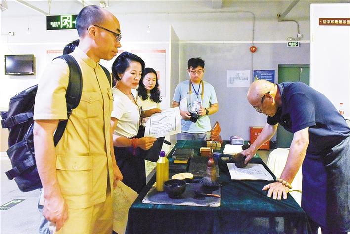 力嘉創(chuàng)意文化產(chǎn)業(yè)園分會場現(xiàn)場為來賓拓印文化創(chuàng)意圖案。