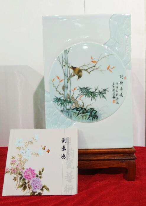 江西省陶瓷技能大師、江西省高級工藝美術(shù)師、惲派花鳥第十二代傳人、景德鎮(zhèn)青年陶瓷藝術(shù)家劉嘉鴻此次展會展出的陶瓷藝術(shù)作品共計(jì)35件,包含瓷板畫、瓷瓶、瓷盤、青花瓷、青花斗彩瓷等,其中《春滿園》、《錦堂富貴》、《長壽圖》等作品呈現(xiàn)陶瓷技藝,展示出劉嘉鴻深厚的藝術(shù)造詣。