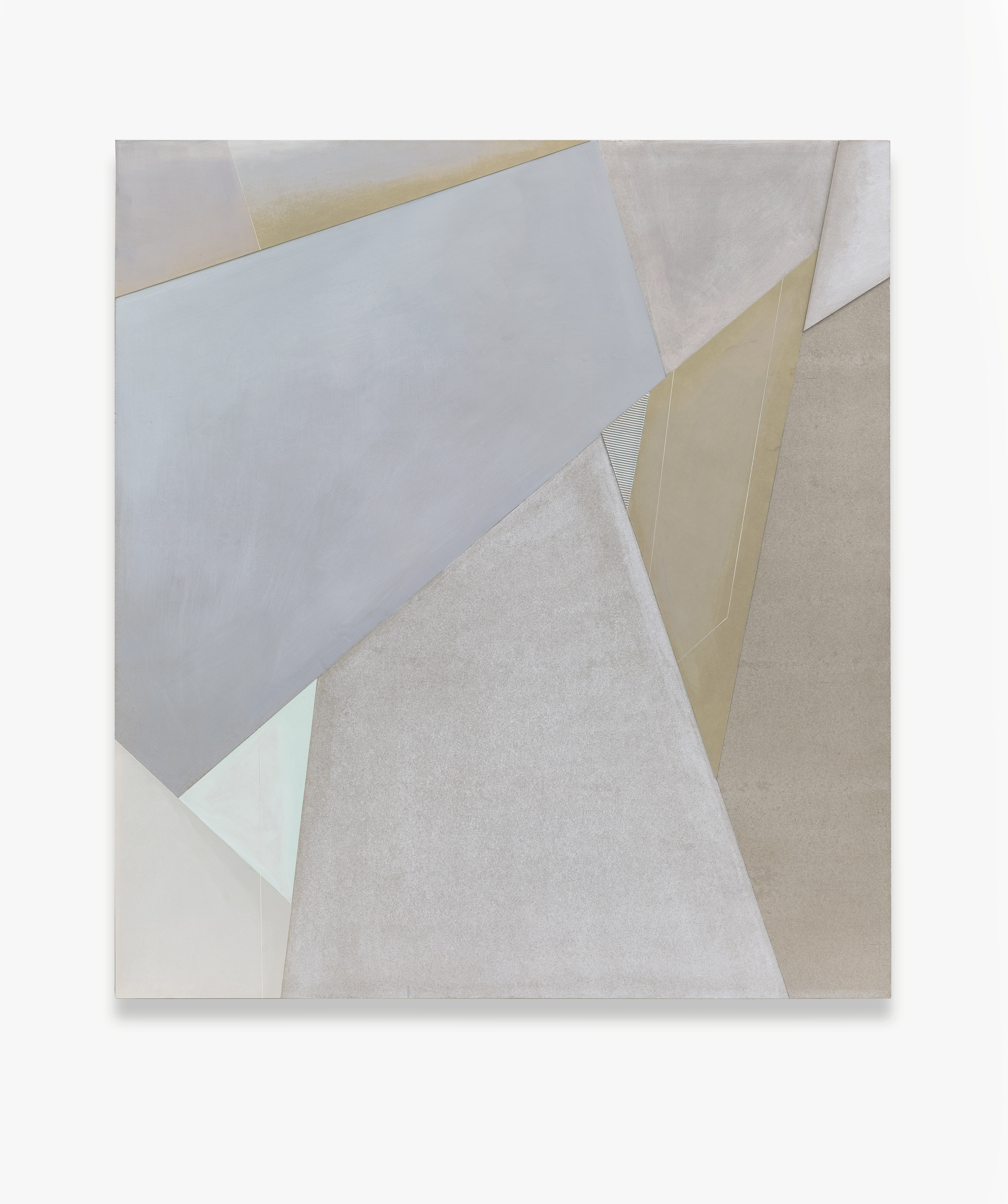 自2013年王豪開始以水泥作為個(gè)人創(chuàng)作媒介以來(lái),三個(gè)系列“寂”、“樸”、“遠(yuǎn)”并行展開?!凹拧焙汀皹恪睆?qiáng)調(diào)水泥作品的靜態(tài)特征,不論是單件作品還是多件組合作品,在水泥材料的細(xì)微變化與色塊搭配上,力求傳達(dá)出一種寧?kù)o、樸拙的整體氣息;“樸”系列在形式上更為豐富,不僅嘗試使用斜線、三角形乃至圓形,還探索富于中國(guó)古典韻味的形式表達(dá)(例如對(duì)中國(guó)古代手卷的模擬);“遠(yuǎn)”系列的名稱則來(lái)源于中國(guó)傳統(tǒng)山水繪畫所特有的透視技法“三遠(yuǎn)”概念,這系列作品意圖通過畫面的動(dòng)態(tài)表現(xiàn)打破二維空間限定,拓展平面繪畫的深度與廣度,從美學(xué)意境上與高遠(yuǎn)、深遠(yuǎn)、平遠(yuǎn)相融合。