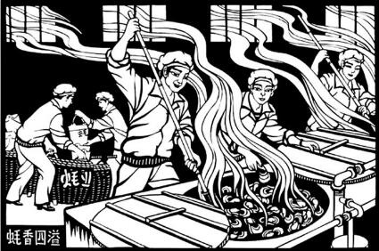 饒凱玉從來沒學(xué)過國(guó)畫,也沒接受過正規(guī)的美術(shù)教學(xué)。在集訓(xùn)一個(gè)月期間,老師給她一本書,建議她向國(guó)畫發(fā)展。她發(fā)現(xiàn)書里有幾幅小剪紙圖很有趣,突然勾起她的創(chuàng)作靈感,為什么不畫農(nóng)村題材呢?她決定創(chuàng)作農(nóng)村“四員”(出納、會(huì)計(jì)、保管、記工員),“四員”是當(dāng)時(shí)典型的社會(huì)人物。“我不要畫國(guó)畫,要刻紙成畫。”饒凱玉說。當(dāng)時(shí),她先用毛筆在紙上勾勒出形象,修改定稿,后用印寫紙反轉(zhuǎn)復(fù)印在刻紙上,再用刀刻紙成畫。