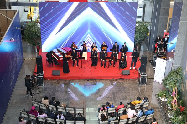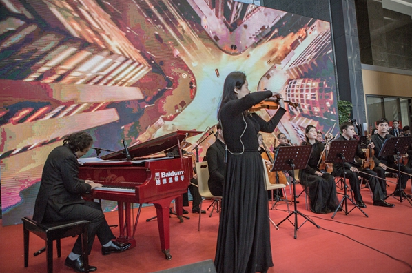 琴聲時(shí)而舒緩如流泉,時(shí)而激越如飛瀑,時(shí)而清脆如珠落玉盤,時(shí)而低回如呢喃細(xì)語(yǔ)……鋼琴與提琴交織,管樂(lè)和弦樂(lè)共舞,是的,你沒(méi)有聽錯(cuò),這是古典交響樂(lè)在午間響起,在福田CBD,在白領(lǐng)云集的辦公樓,在招商銀行深圳分行大廈的營(yíng)業(yè)大廳里。2018年2月6日,招商銀行深圳分行大廈迎來(lái)了福田愛樂(lè)樂(lè)團(tuán)午間音樂(lè)會(huì)新年的第三場(chǎng)演出,也是該樂(lè)團(tuán)自2015年創(chuàng)辦午間音樂(lè)會(huì)以來(lái)的第84場(chǎng)演出。高雅的藝術(shù)氣息讓原本單調(diào)的午間趣味橫生,動(dòng)人的場(chǎng)景、美妙的樂(lè)音,在這里一一定格。