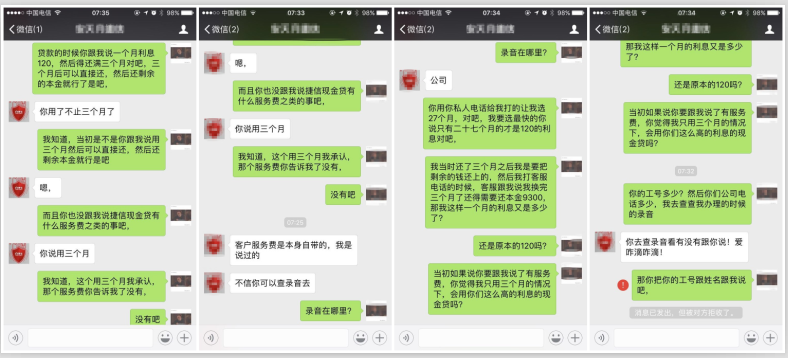 實際償還數(shù)與當(dāng)初協(xié)商數(shù)不符,何先生聯(lián)系到當(dāng)初為自己辦理貸款的捷信業(yè)務(wù)員,但是對方稱自己提醒過何先生有服務(wù)費,并要求何先生去捷信總公司調(diào)取錄音,但是當(dāng)何先生提出調(diào)取錄音時,對方卻將他微信拉黑了。