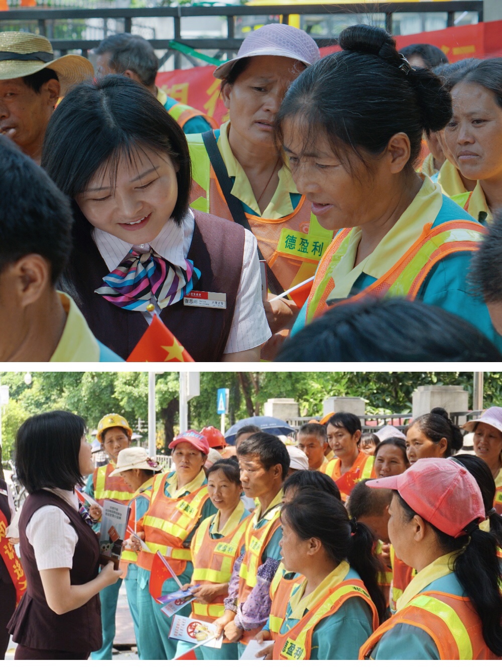 時代廣場支行走近環(huán)衛(wèi)工人,以金融知識宣教活動實現(xiàn)“招行紅”與“環(huán)衛(wèi)橙”的美麗相遇。