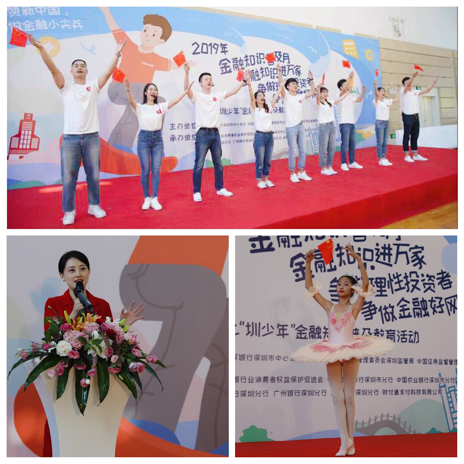 活動開場前,招商銀行深圳分行的員工精心策劃準備了驚喜快閃《我和我的祖國》,與全體觀眾互動合唱,點燃了現(xiàn)場。隨后舉行了“圳少年”金融知識普及教育活動的啟動儀式,監(jiān)管機構(gòu)、金融機構(gòu)和學(xué)校共同幫助青少年不斷提升金融素養(yǎng),通過趣味金融課堂體驗的形式,樹立正確的消費觀和價值觀。青少年朋友們從寓教于樂的金融課堂中收獲頗豐,本次活動也得到各單位和公眾的一致好評。