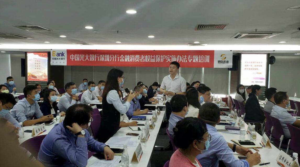 深圳新聞網(wǎng)·見圳客戶端2020年10月27日訊 根據(jù)中國人民銀行深圳市中心支行和總行的工作要求,為貫徹落實《中國人民銀行金融消費者權(quán)益保護(hù)實施辦法》,光大銀行深圳分行黨委高度重視,紀(jì)委書記方眾牽頭主抓,在分行渠道管理部/消費者權(quán)益保護(hù)部精心組織下,10月26日,光大銀行深圳分行成功舉辦了“金融消費者權(quán)益保護(hù)實施辦法”專題培訓(xùn),全行各部門、各經(jīng)營單位負(fù)責(zé)人及柜臺經(jīng)理共有120余人參加培訓(xùn)。培訓(xùn)強化了員工對該辦法的認(rèn)識和理解,進(jìn)一步提升了金融消費者權(quán)益保護(hù)工作質(zhì)量。