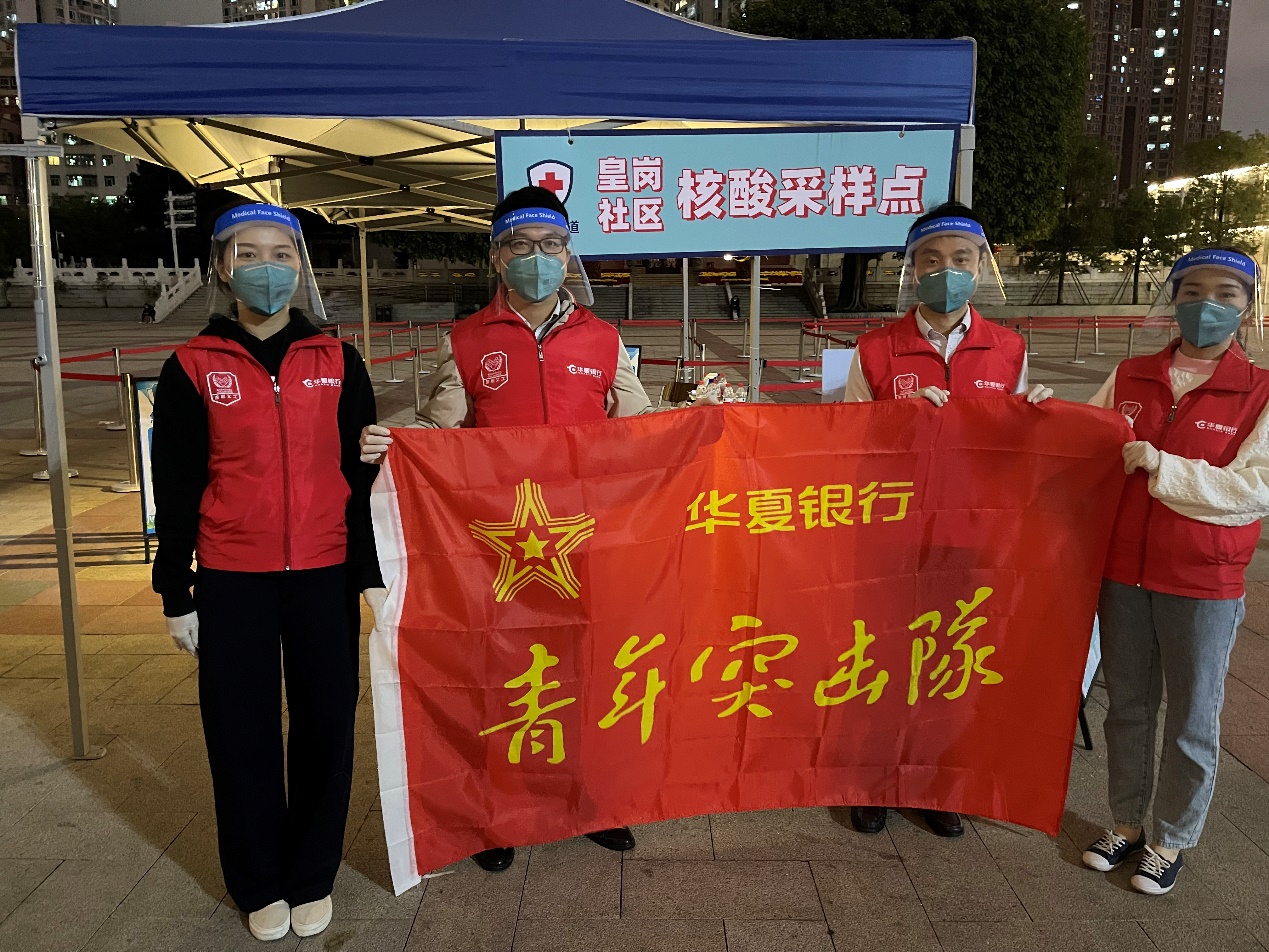 華夏銀行深圳分行在做好金融服務(wù)的同時(shí),迅速響應(yīng)號(hào)召,第一時(shí)間發(fā)出招募令,號(hào)召全行青年志愿者踴躍參與疫情防控。來自分支行的黨員、青年團(tuán)員迅速集結(jié),奔赴到疫情防控一線,在做好安全防護(hù)的基礎(chǔ)上,深入福田街道皇崗文化廣場(chǎng)、高發(fā)城馳廣場(chǎng)核酸采集點(diǎn),協(xié)助防疫工作組維護(hù)現(xiàn)場(chǎng)秩序、身份信息登記等志愿服務(wù)工作,全面助力提升核酸檢測(cè)效率。對(duì)于一些帶小孩或者不熟悉掃碼程序的群眾,志愿者們熱情耐心給予指導(dǎo),確保核酸采集點(diǎn)保持良好秩序。