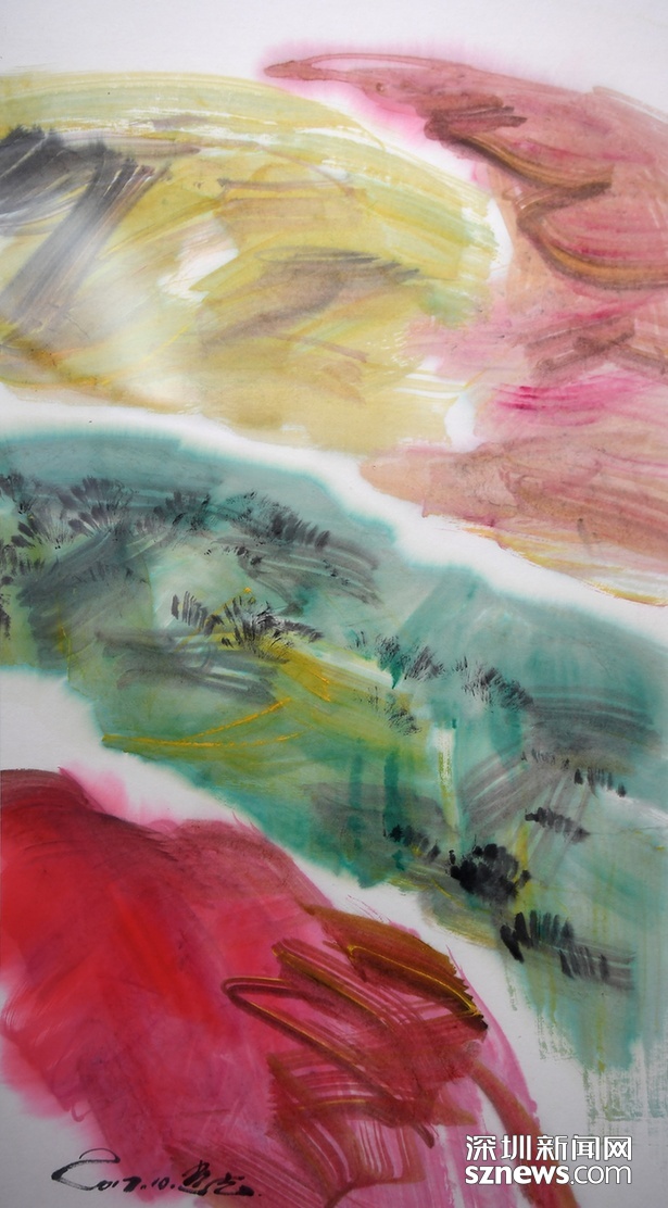 深圳大學(xué)藝術(shù)與設(shè)計學(xué)院副院長鄒明這樣評價紀(jì)光吉:如果說繪畫重在情感表達(dá)的話,在紀(jì)光吉的作品里讓人著實感受了一種隨心所欲的暢快。他幾乎沒有傳統(tǒng)觀念的束縛,行云流水信筆為之,花非花,山非山,墨色交融,隨意為之,意象、心意,只是表現(xiàn)心中對物象的一種感知,畫的樂趣也就自然而然其中了。品味其中,視覺上的快感有種自由自在的輕松,尤其是他畫里的花卉,沒有清晰的花朵,只是綻放的色彩和姿意的線條相互交織在一起,璀璨、斑瀾,洋溢著一種浪漫氣息。