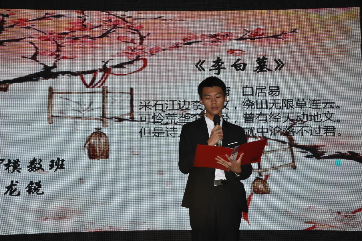深圳新聞網(wǎng)訊 5月29日晚上,“新時(shí)代中華優(yōu)秀傳統(tǒng)文化進(jìn)社區(qū)”項(xiàng)目第五場(chǎng)活動(dòng)——“白居易詩(shī)歌專(zhuān)場(chǎng)朗誦大賽”在深圳市寶山技工學(xué)校寶山大舞臺(tái)拉開(kāi)了帷幕,由寶山學(xué)子傾情吟誦白居易的詩(shī)歌,給聽(tīng)眾帶來(lái)一場(chǎng)唯美動(dòng)人的視聽(tīng)盛宴。