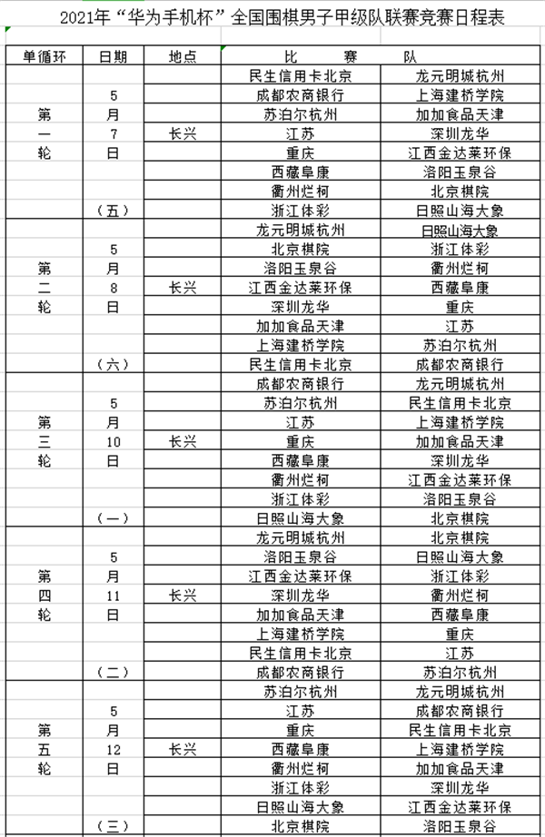 見圳客戶端深圳新聞網(wǎng)2021年5月6日訊(記者 周錦春)2021華為手機(jī)杯中國(guó)圍棋甲級(jí)聯(lián)賽今天在浙江長(zhǎng)興拉開帷幕,首輪比賽將在5月7日進(jìn)行。根據(jù)4月22日在中國(guó)棋院舉行的抽簽結(jié)果,次日首輪比賽對(duì)陣形勢(shì)如下:深圳龍華隊(duì)將對(duì)陣江蘇隊(duì);衛(wèi)冕冠軍江西隊(duì)對(duì)陣重慶隊(duì);上屆亞軍日照隊(duì)對(duì)陣浙江隊(duì)。