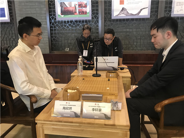 四臺(tái)陶欣然執(zhí)白對(duì)李軒豪一局,甫一開始就圍繞“羋氏飛刀”定式引發(fā)的雙征子進(jìn)入纏斗狀態(tài),極其精采,其后,黑棋棄掉左下后在右邊形成巨大模樣。白棋后半盤局面判斷失誤,手法過于平淡,沒有尋求在黑棋模樣中獲得更大便宜的下法。最終白棋以1又3/4子差距落敗。
