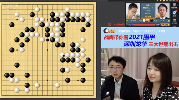 今日虎牙直播,職業(yè)女棋手戰(zhàn)鷹繼續(xù)現(xiàn)場(chǎng)講解點(diǎn)評(píng)深圳龍華隊(duì)對(duì)局情況,觀看人數(shù)又創(chuàng)新高,直沖30萬大關(guān)。賽后,“龍哥”時(shí)越來到直播室,與迷們一起分享了對(duì)局過程中的心路歷程。戰(zhàn)鷹作為圍棋知名主播,是深圳龍華隊(duì)網(wǎng)上直播合作人,為龍華隊(duì)帶來了一波接一波的人氣,直播室十分熱鬧!喜歡的朋友接著看吧!不過,大家要記得:明天圍甲休息一天,接著三天會(huì)連播。