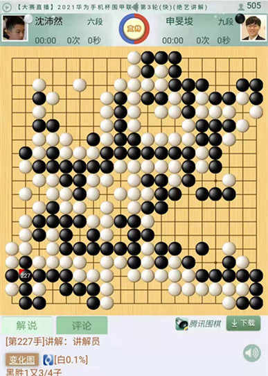 今日比賽中,二臺(tái)的主將時(shí)越先贏,是盤,時(shí)越執(zhí)黑主將對(duì)陣姜東潤(rùn)。行至中盤,白棋侵消上邊黑棋模樣,黑棋攻擊手法略嫌急躁,局面復(fù)雜。戰(zhàn)斗蔓延到左上時(shí)候,白棋處理眼位不當(dāng),導(dǎo)致左上白棋需要多花一手棋做活。被黑棋中央搶先動(dòng)手吃住大龍。隨后,四臺(tái)快棋外援申旻埈繼昨日后又一次險(xiǎn)勝,可謂好運(yùn)連連。本局申旻埈執(zhí)黑對(duì)陣商借到西藏隊(duì)的沈沛然。白棋開(kāi)局至中盤超水平發(fā)揮,局面一度白棋勝勢(shì)。官子時(shí)候黑棋在白空里試應(yīng)手,白棋讀秒中忙中出錯(cuò),下出緩手應(yīng)對(duì)失誤,被黑棋便宜了接近十目棋,導(dǎo)致局勢(shì)逆轉(zhuǎn)黑棋幸運(yùn)獲勝。