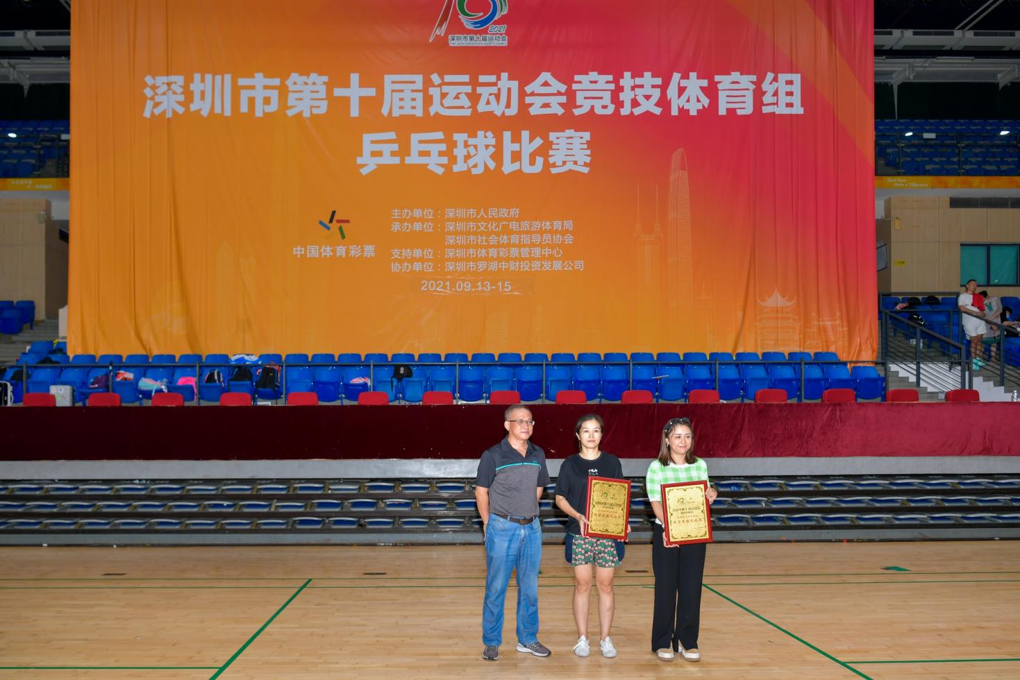 深圳市羅湖中財文體場館管理部部長李志軍(左1 )為獲獎運動員頒獎