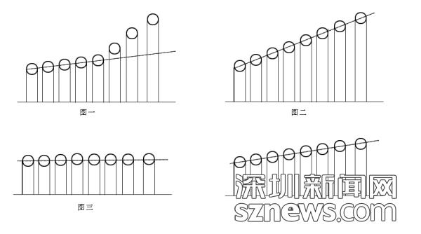 圖三,所有的支柱一般高,當(dāng)屬中庸,但是,沒有側(cè)重,沒有突出,也只能平平淡淡,隨遇而安,也要調(diào)整;