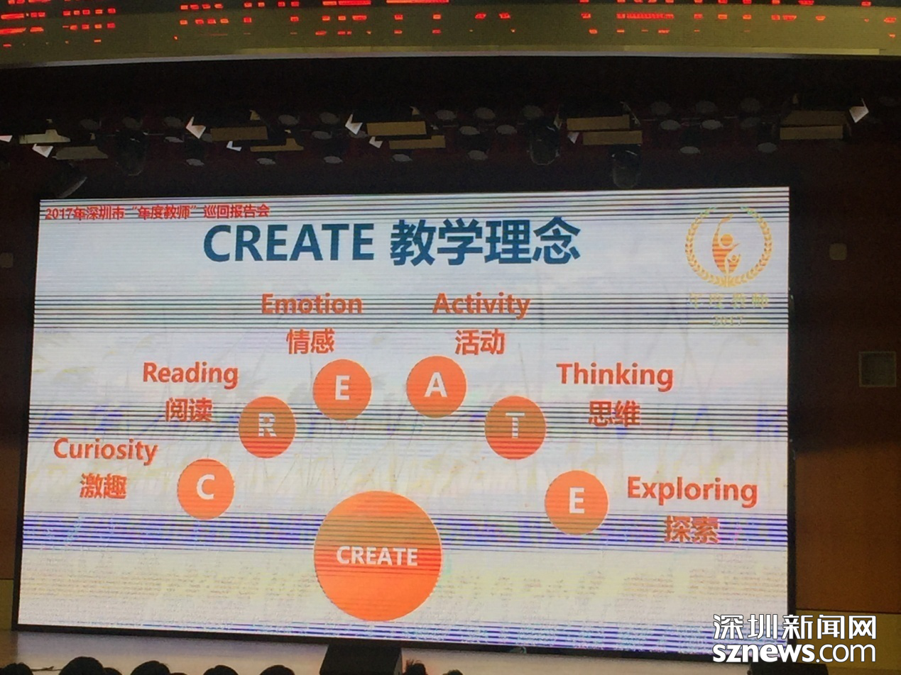 我有幸聽了一場深圳市年度教師的巡回演講,其中一個老師講到自己的幸福成長過程時,展示了自己獨(dú)有的特色教學(xué)理念——CREATE教學(xué)理念,如圖,她的所有課堂充現(xiàn)了激趣、閱讀、情感、活動、思維和探索等六大環(huán)節(jié),彰顯特色,成就精英,當(dāng)你達(dá)到如此境界時,幸福感和成就感就會水到渠成,雖然不求人人成精英,但愿人人有特色。