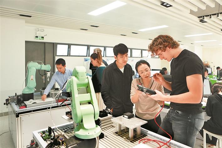 來自德國肯普滕國立第一職業(yè)學校的交換生在深圳參加技能培訓。