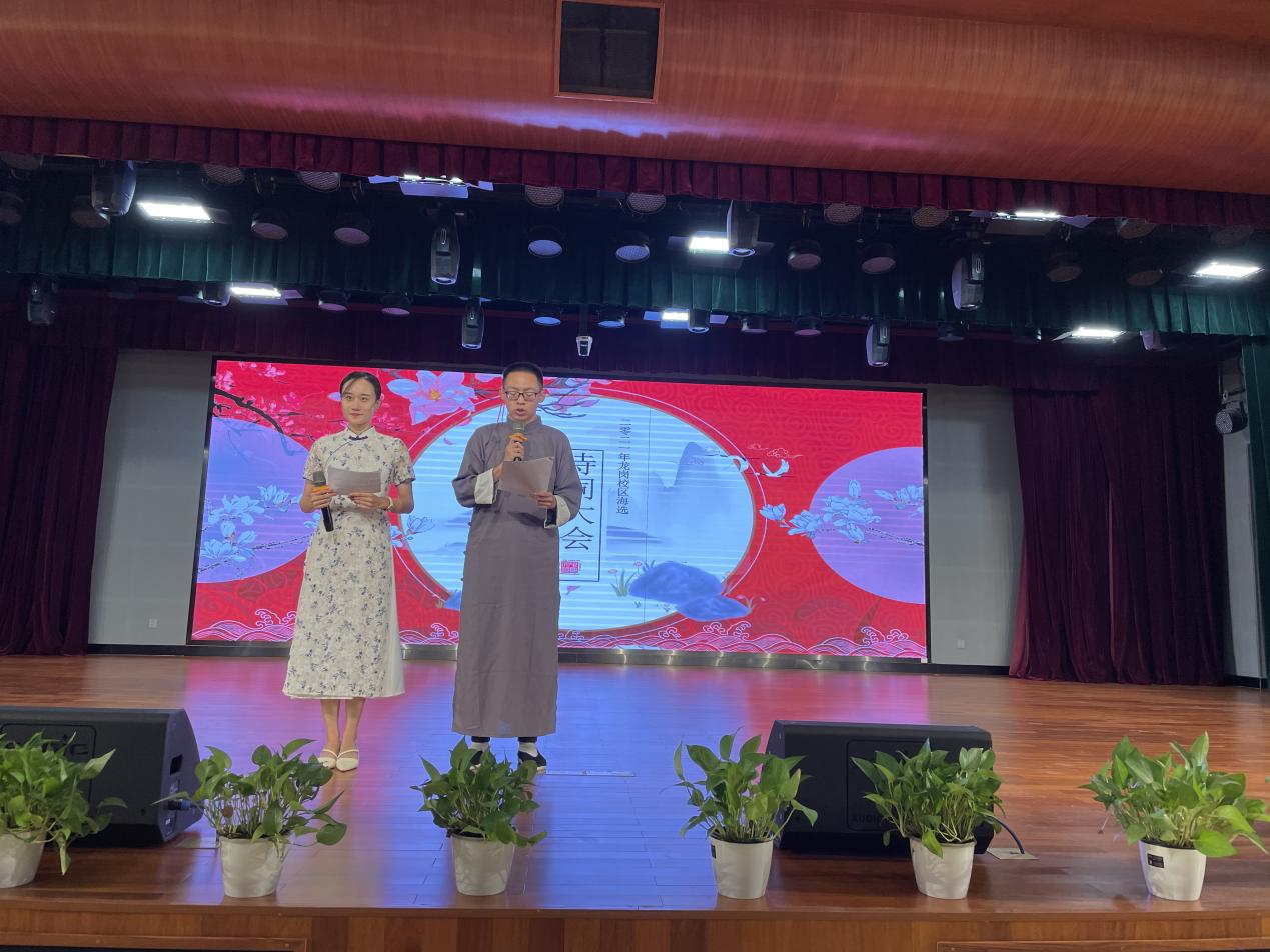 龍嶺學(xué)校領(lǐng)導(dǎo)高度重視本次海選活動,龍嶺教育集團副總校長王永忠、初級中學(xué)圖書館館長黃紅成親自部署,精心組織,在海選通知發(fā)布后,龍嶺學(xué)子踴躍報名,短短的一個月時間內(nèi)報名人數(shù)就達到200余名,經(jīng)過層層篩選,從愛好詩詞的學(xué)生中篩選了15名選手參加現(xiàn)場海選。15位選手朗誦的詩詞題材十分廣泛,有語言自然雋永,韻律宛轉(zhuǎn)悠揚的《春江花月夜》;有情感飽滿,豪縱狂放的《將進酒》;有氣象恢弘,慷慨激憤的《江城子·密州出獵》;有意境壯美,胸襟豪邁的《沁園春·雪》……選手們形象自信大方,感情充沛飽滿,時而溫情傾訴,時而奔放熱情,時而娟娟細語,時而豪情壯志,充分體現(xiàn)了龍嶺學(xué)子高超的朗誦水平和良好的語文素養(yǎng),獲得評委和在場觀眾陣陣熱烈的掌聲。