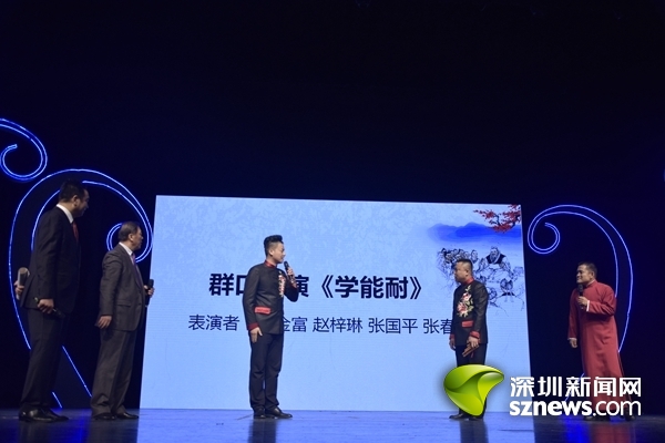 其后還有中國(guó)快板藝術(shù)委員會(huì)主任、著名快板書(shū)表演藝術(shù)家、非物質(zhì)文化遺產(chǎn)傳承人、中國(guó)曲藝牡丹獎(jiǎng)得主李少杰帶來(lái)的經(jīng)典快板《天安門(mén)廣場(chǎng)看升旗》,質(zhì)樸的詞句,充沛的情感,以看升旗為出發(fā)點(diǎn),表達(dá)的都是對(duì)國(guó)家的熱愛(ài);古文新說(shuō)題材的相聲《趣說(shuō)文言文》,帶來(lái)了頗為新鮮的體驗(yàn);還有以深圳市鹽田區(qū)抗戰(zhàn)時(shí)期的真人真事改編的評(píng)書(shū)《龍嘴兒》、傳統(tǒng)相聲《大保鏢》和《學(xué)歌曲》等,曲種豐富多樣,令全場(chǎng)掌聲雷動(dòng),觀眾們贊不絕口。