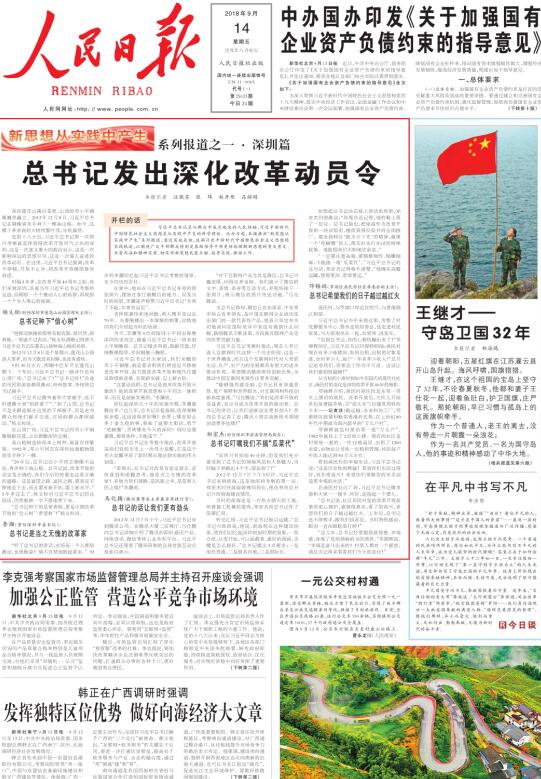 人民日報(bào)今起推出“新思想從實(shí)踐中產(chǎn)生”系列報(bào)道,通過實(shí)地采訪,追溯習(xí)近平新時(shí)代中國特色社會(huì)主義思想的實(shí)踐軌跡。系列報(bào)道開篇之作《總書記發(fā)出深化改革動(dòng)員令》今天在頭版頭條隆重推出,全文轉(zhuǎn)載如下: