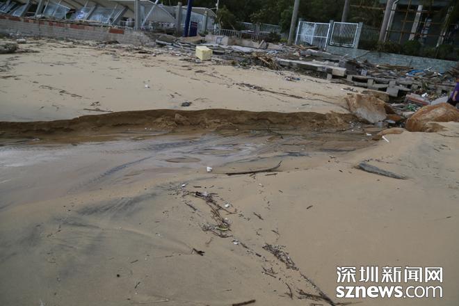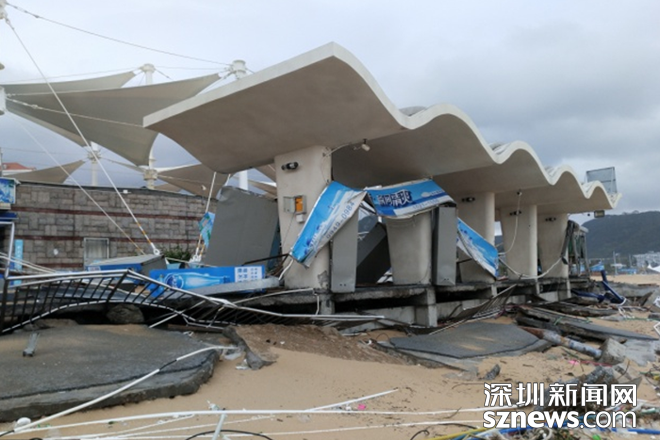 小梅沙旅游度假村景區(qū)內(nèi)沙灘海沙被卷走超7萬(wàn)多立方,約2000米的堤岸及道路沖垮,公共、建筑設(shè)施及構(gòu)筑物全部受損,部分完全損毀,13處經(jīng)營(yíng)管理場(chǎng)所損毀,綠化、樹(shù)木等嚴(yán)重破壞,直接經(jīng)濟(jì)損失預(yù)估超過(guò)5000萬(wàn)元。
