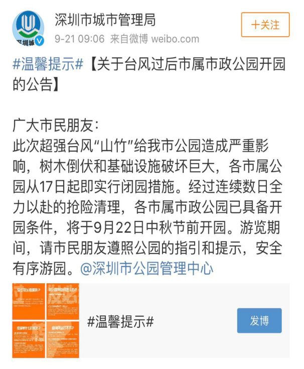 經(jīng)受過臺風(fēng)洗禮后的深圳市屬公園今天?。?!終于都開園啦!