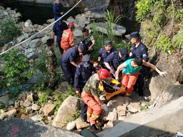 到現(xiàn)場后,民警了解發(fā)現(xiàn)該男子在爬山的過程中不小心踩到苔蘚摔倒受傷,當(dāng)場倒地不起,無法動彈。情況緊急,四周山路陡峭,120急救人員短時間內(nèi)難以到達(dá)進(jìn)行救治。這時,葉孟庭等民警當(dāng)機(jī)立斷,將同行救援隊員分成兩組,用擔(dān)架將傷者一步步接力抬下山。此處位于亂石山澗中,隊員只能齊心協(xié)力抬著擔(dān)架一點(diǎn)一點(diǎn)小心挪移,坡陡石滑,空氣悶濕,加之荊棘擋道,隊員們汗如雨下,整整花了2個多小時才將擔(dān)架安全抬到盤山公路懸崖邊,隊員們個個衣衫濕透,手腳上的擦劃痕跡清晰可見。