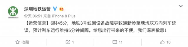 9日上午,深圳地鐵3號(hào)線發(fā)生故障致列車停運(yùn)