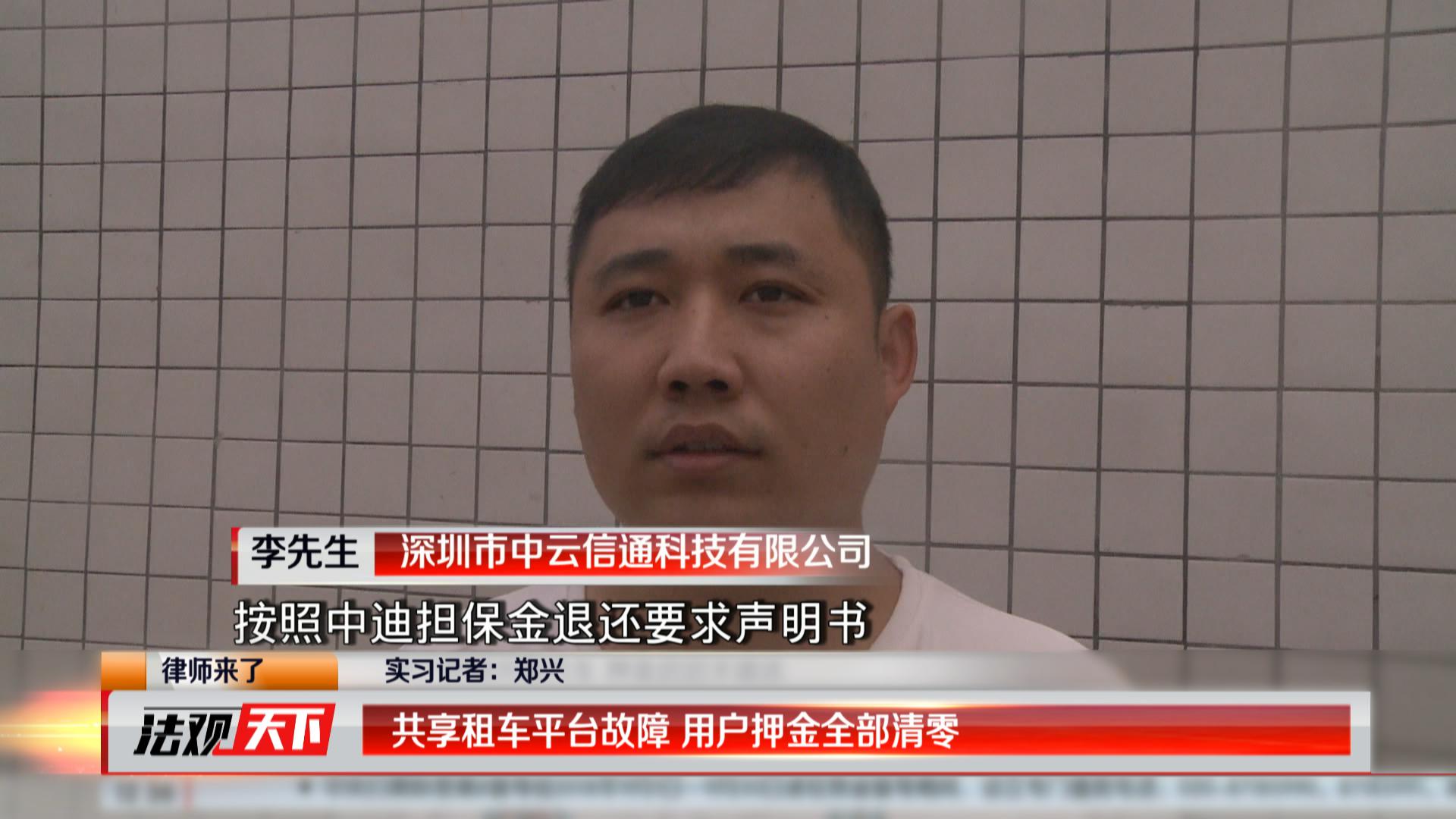 隨后,《法觀天下》嘉賓律師歐陽春陪同用戶一起來到了中迪用車所屬的公司,該公司名為深圳市中云信通科技有限公司,位于寶安區(qū)西鄉(xiāng)大道旁的滿京華現(xiàn)代西谷大廈3座11樓了解情況。進(jìn)入公司后,中云信通科技有限公司代表李先生接待了我們,并且說明了APP使用不了和余額顯示為零的具體原因。