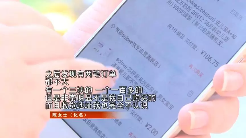 陳女士表示,昨天上午看到已派送的兩個(gè)訂單,有奶粉和尿不濕,這都不是自己購買的。