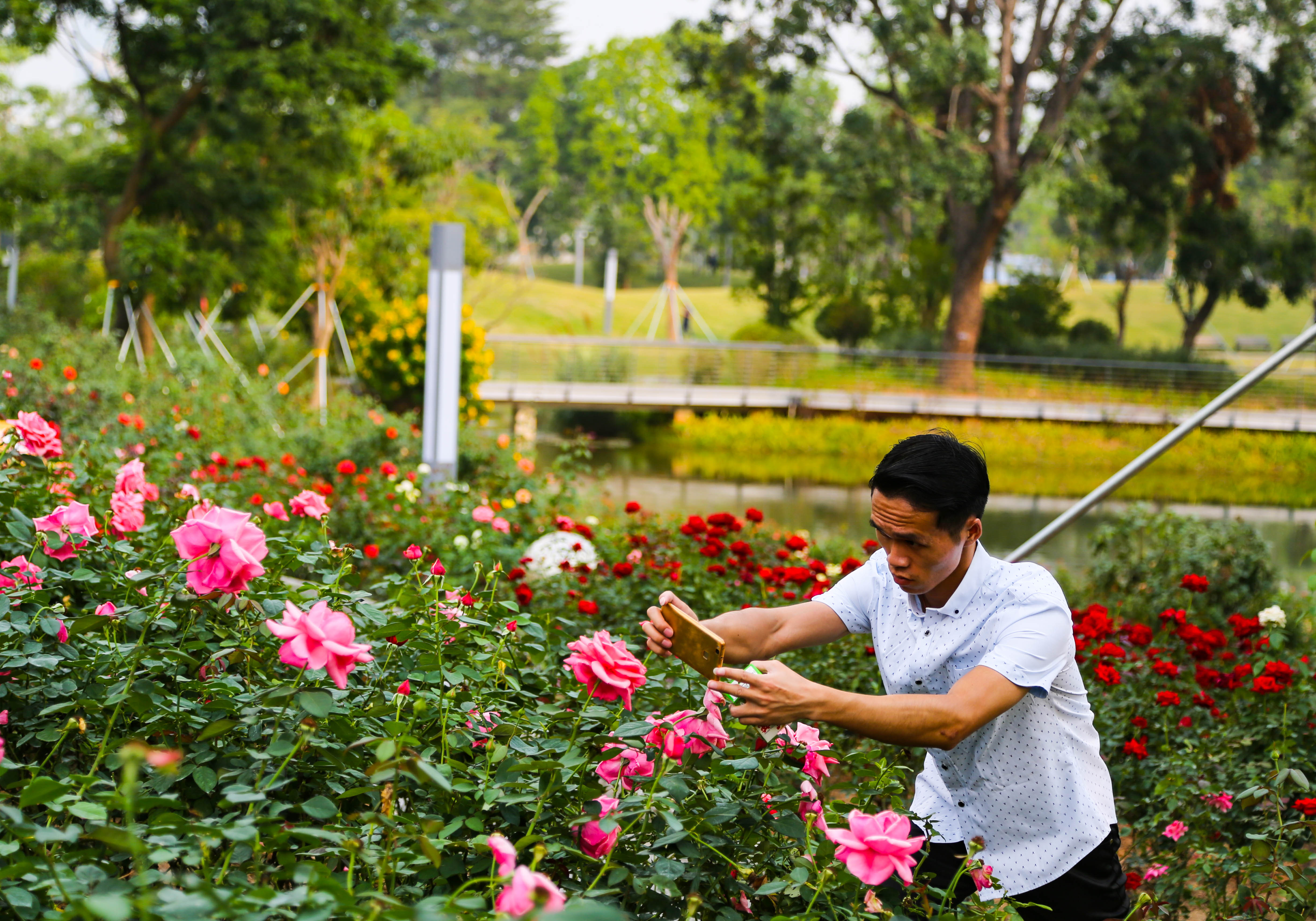 市民正在用手機(jī)拍攝花朵。