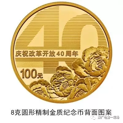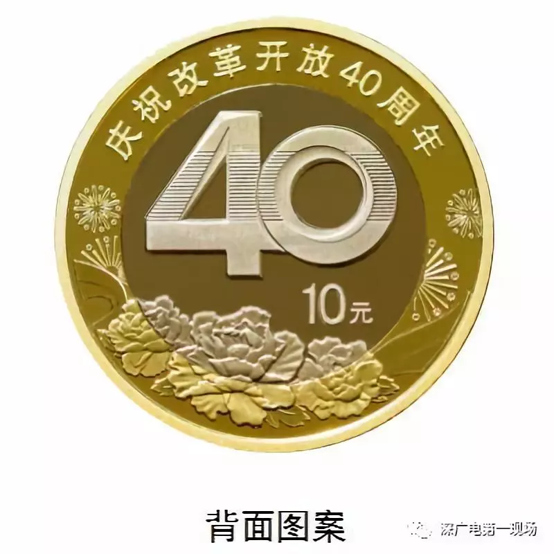 背面圖案為數(shù)字“40”造型與牡丹花組合設(shè)計,并刊“慶祝改革開放40周年”字樣及面額。