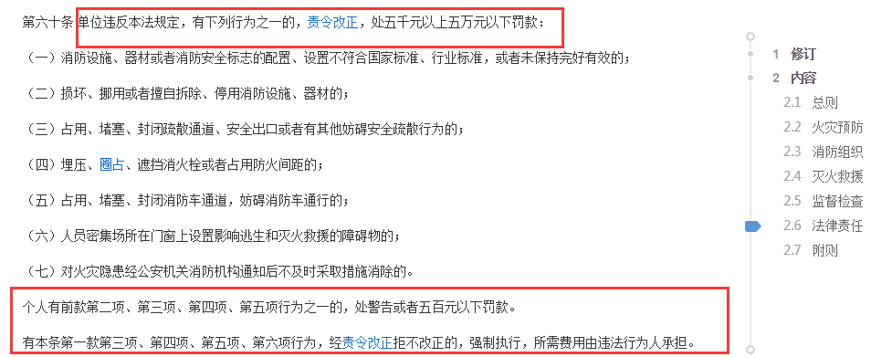 《中華人民共和國消防法》第六十條內(nèi)容截圖