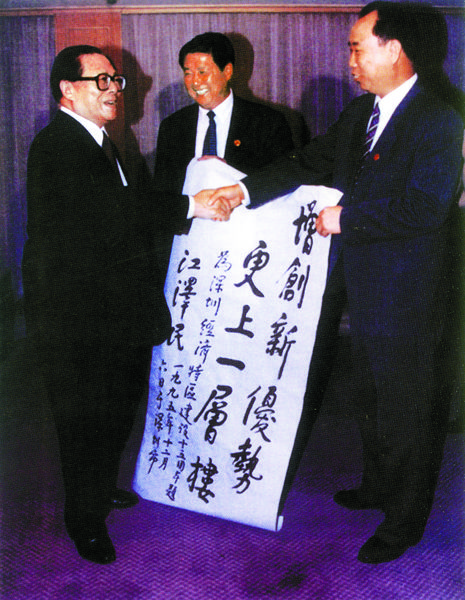 1995年12月,江澤民為深圳經(jīng)濟(jì)特區(qū)題詞:增創(chuàng)新優(yōu)勢,更上一層樓。 陳富 攝
