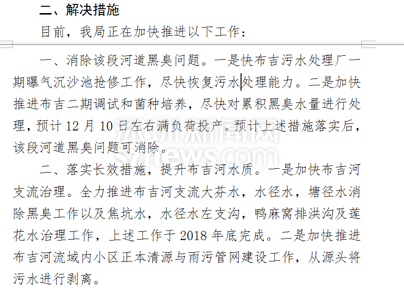 針對上述疑問,龍崗區(qū)環(huán)水局承諾將抓緊推進(jìn)布吉污水處理廠一期曝氣沉沙池?fù)屝薰ぷ鳎M快恢復(fù)污水處理能力,而二期工程也預(yù)計(jì)于12月10日左右滿負(fù)荷投產(chǎn),以上措施落實(shí)后,該環(huán)水局認(rèn)為此段河道黑臭問題便可消除。為了保障治水工作長期有效,環(huán)水局還制定了加快布吉河支流治理及加快推進(jìn)布吉河流域內(nèi)小區(qū)正本清源與雨污管網(wǎng)建設(shè)工作的計(jì)劃。