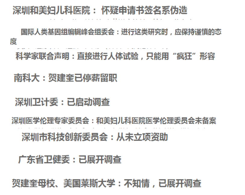 此事件涉及的多個部門也撇清了與賀建奎的關系