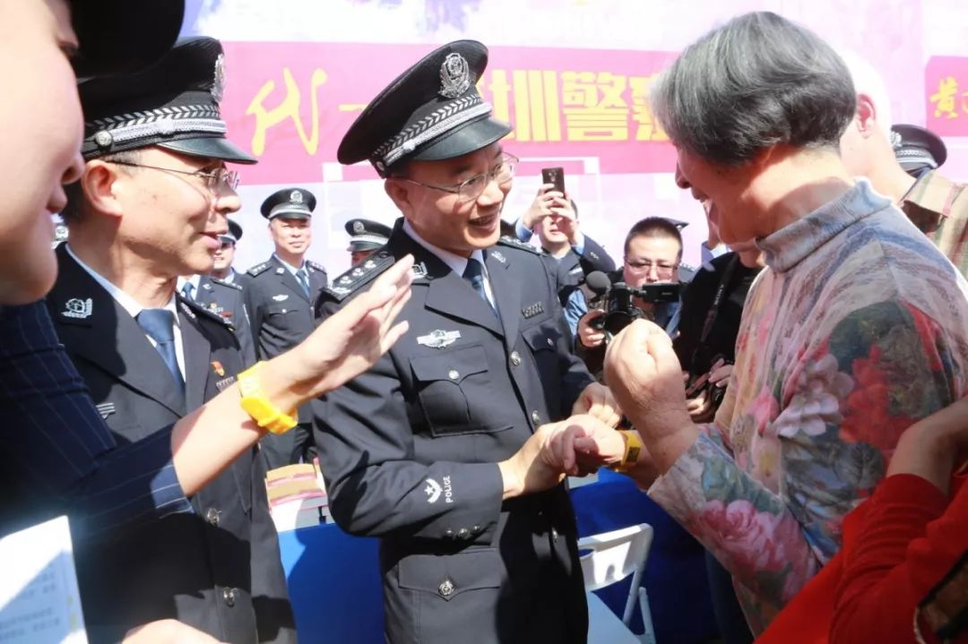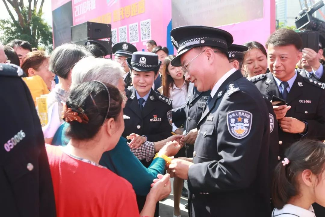 儀式后,深圳市副市長、公安局長徐文?,F場為來參觀活動的老人和小孩佩戴了“黃手環(huán)”,陽光的顏色,給人溫暖,讓人安心,傳遞了正能量。