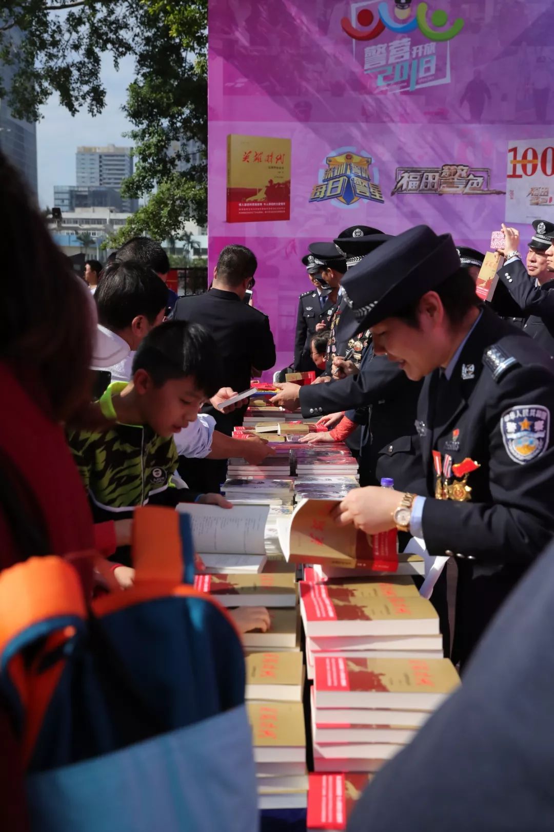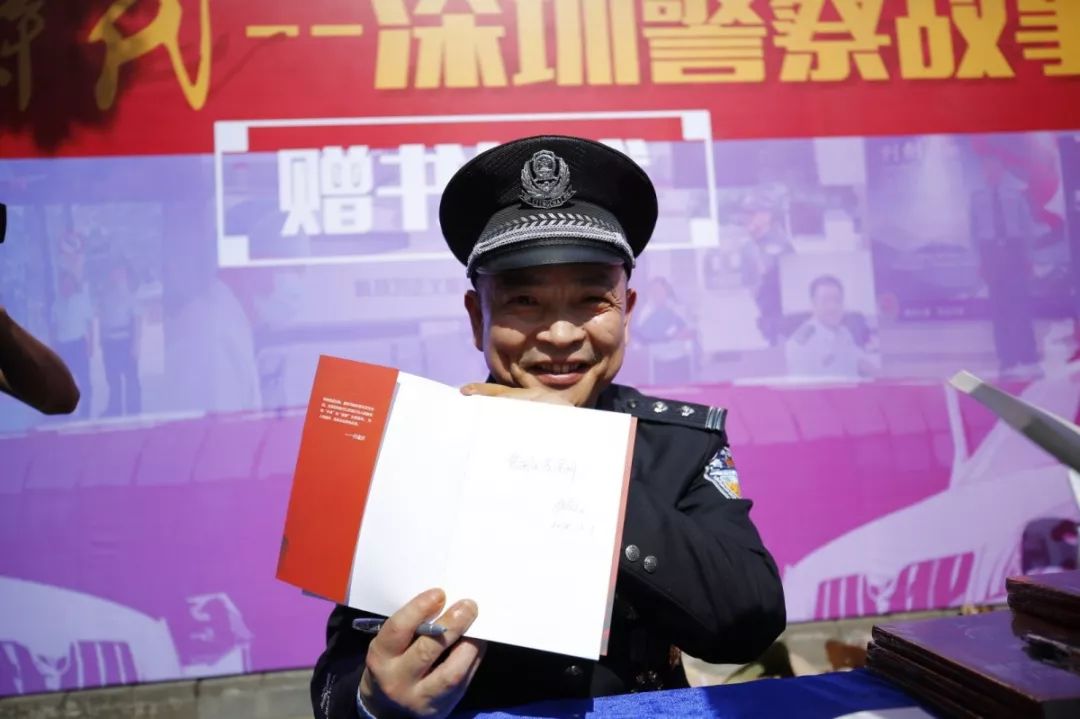 當天上午,人民公安出版社副總編李國強、著名作家李迪與市公安局領導來到福田分局開放點現場為深圳公安“每日警星”代表簽名贈書。在贈書點,許多市民排起了長隊,領取《英雄時代——深圳警察故事》。