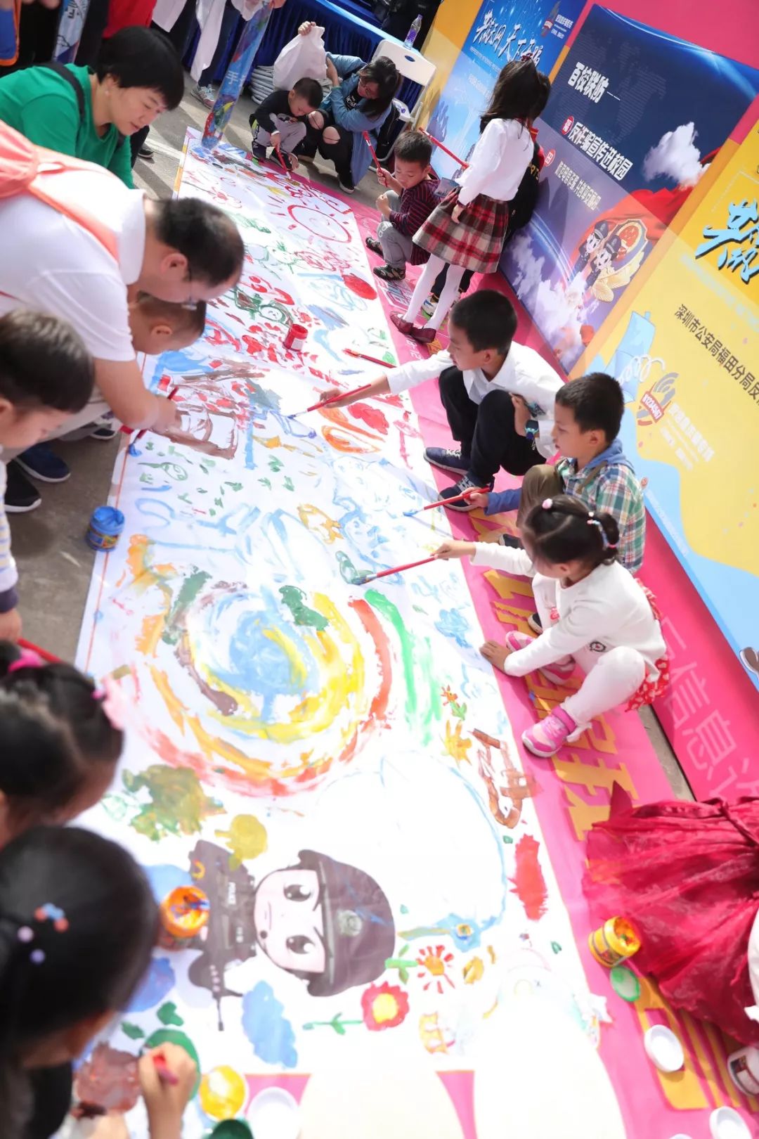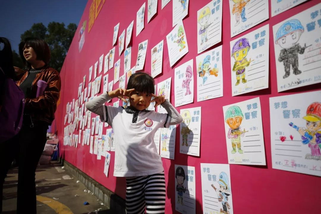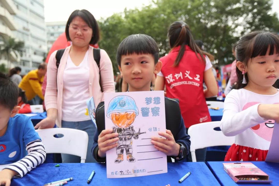 最具童年味道和勃勃生機,大人和小孩現場涂鴉,寫出對警察想說的話,也可以在畫架畫板上畫出自己心目中的警察,在孩子心中種下警察的種子,滿滿的寄語,是對福田警察的祝福和期待,這也是警察蜀黍肩膀上沉甸甸的責任和勇往直前的力量!