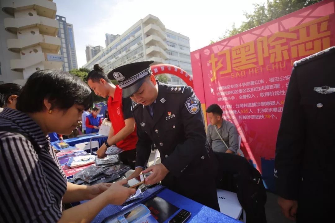深圳市公安局指揮部有獎舉報中心聯合福田公安分局開展“有獎舉報”宣傳活動,民警現場發(fā)放宣傳資料,積極發(fā)動群眾踴躍舉報,不斷提高群眾對掃黑除惡專項斗爭的知曉度,市民咨詢不斷,形成了對黑惡勢力“零容忍”和人人喊打的良好氛圍。