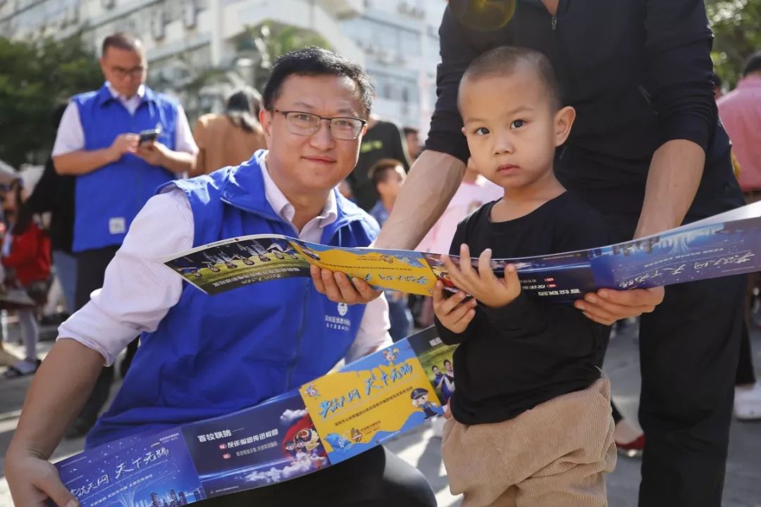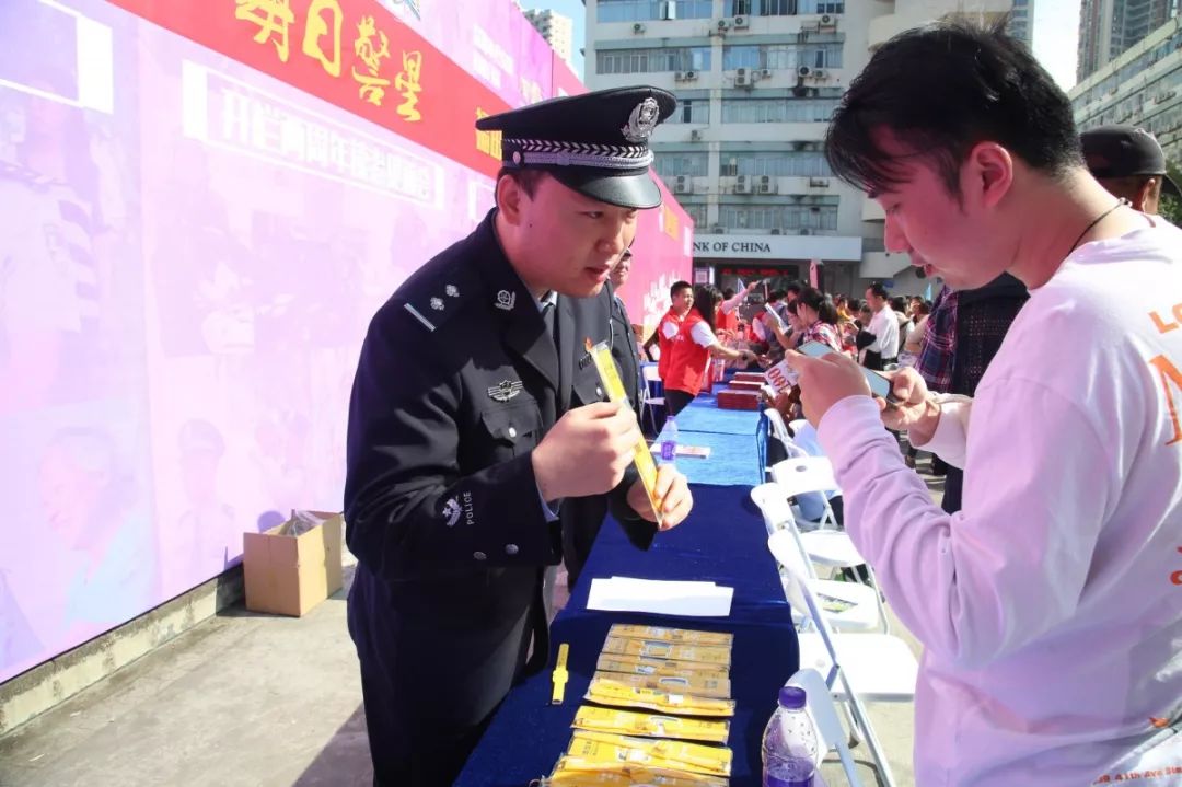 福田公安分局反詐騙宣傳團隊開展反詐騙宣傳、互動游戲,通過異形展板、反詐騙海報等,向市民防范宣講常見詐騙手段,群眾紛紛拿起手機“移形換影”自拍,掃一掃“福田警察”二維碼,加入到反詐騙行動隊伍,為“反詐騙”代言,提高防騙技能。同時,分局法制、經偵、禁毒、出入境、戶政等部門現場擺臺,民警一一解答群眾提出的各類咨詢問題。