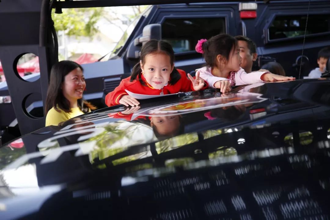 防暴盾牌、槍支警械威武霸氣,隊列棍術、擒拿格斗輪番上陣。很多人興致勃勃地穿戴警用裝備,頭戴鋼盔、身穿警服,登上反恐敞篷車拍照留念,圓夢警察夢想。