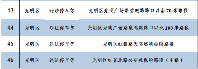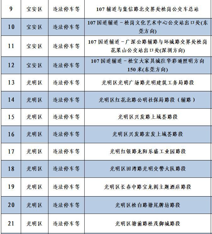 深圳新聞網(wǎng)12月10日訊(記者 何暢)據(jù)“深圳交警”微信公眾號(hào)消息,深圳56套“電子警察”新上線,其中46套專門查處違法停車,4套用于查處泥頭車違反禁行限行規(guī)定,6套用于查處沖紅燈、逆行、進(jìn)入導(dǎo)向車道變更車道等違法行為。56套“電子警察”具體分布位置如下: