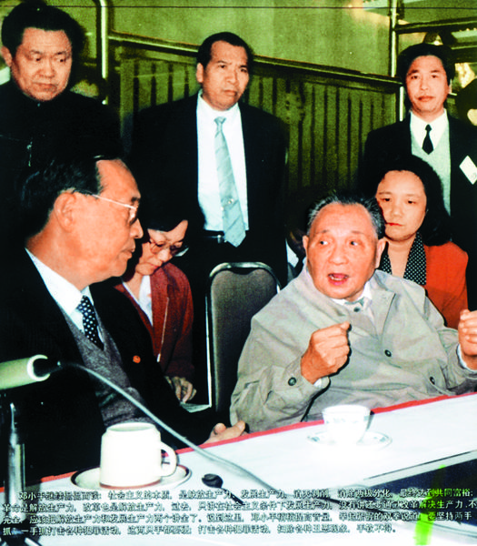 1992年1月20日,小平同志登上國貿(mào)大廈旋轉(zhuǎn)餐廳,聽取時(shí)任市委書記的李灝的匯報(bào)并發(fā)表談話。資料圖片
