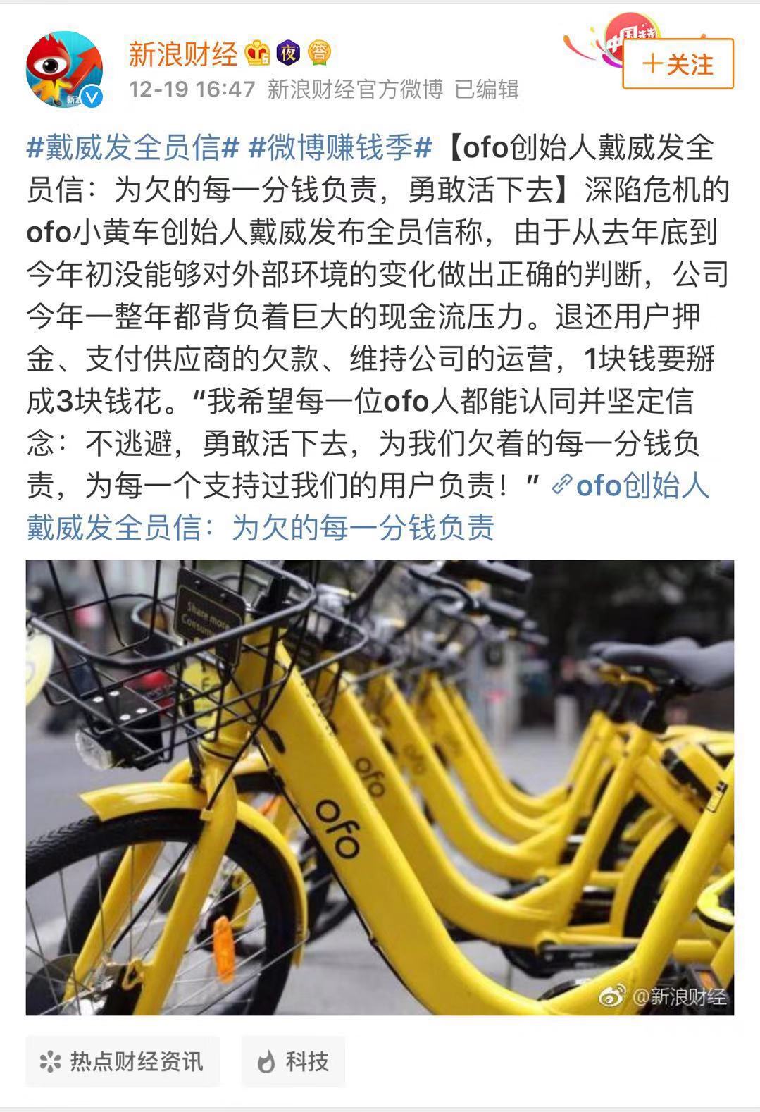 對此,戴威表示:對欠的每一分錢負(fù)責(zé)